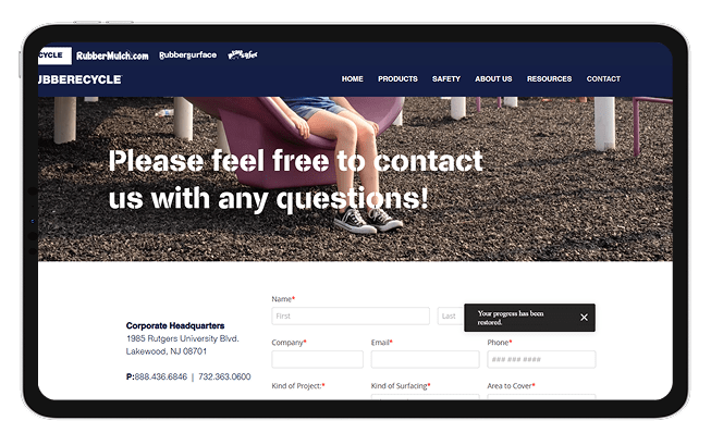 RubberRecycle turns old tires into useful products for construction and playgrounds in the USA.